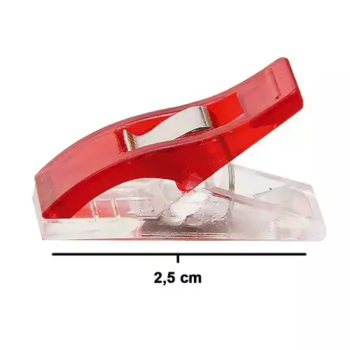 Ideal para segurar camadas mais grossas de tecidos, mantas, feltros entre outros! Os Prendedores são uma excelente alternativa para prender, especialmente quando se trabalha com tecidos. O produto tem uma abertura que permite fixar várias camadas de tecidos. Não danifica e nem distorce seu tecido.
